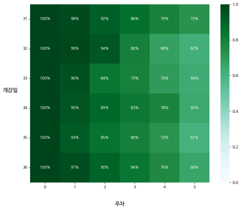 # 앞서 만든 피벗 테이블을 retention 변수에 저장하기