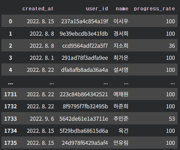 이후 진도율에 대한 정보를 활용하기 위해 미리 리스트화 하여 progress_rate에 넣어주었다.