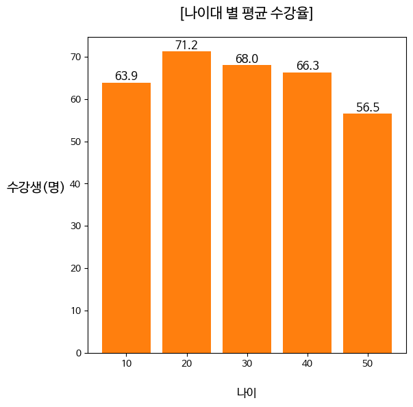 plt.title('[나이대 별 평균 수강율]',fontsize=15,pad=20)