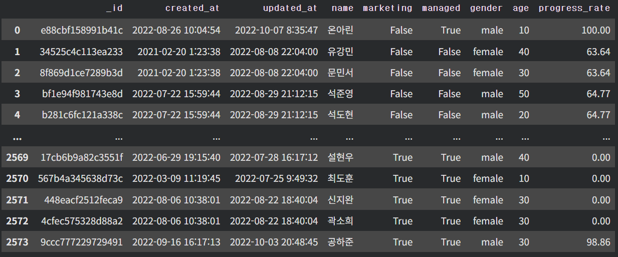 #_id, created_at, updated_at, name, marketing, managed, gender, age, progress_rate