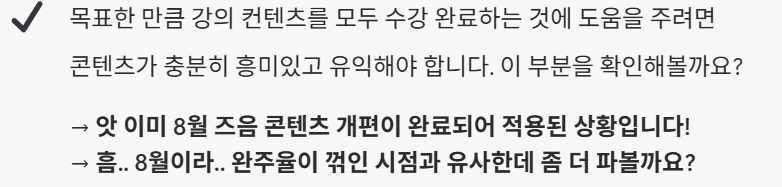 오늘 주어진 과제는 완주율이 떨어진 이유 찾기