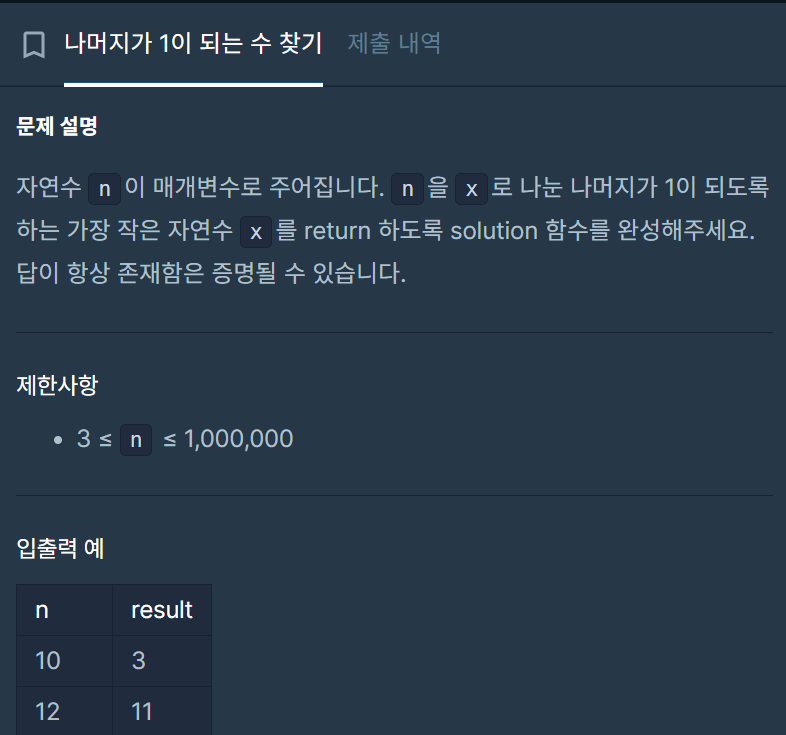 # 나머지가 1이 되려면 나누는 수 x는 최소 2 이상이어야 합니다.