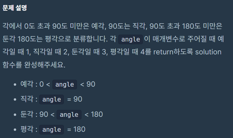 1. if문을 이용하여 angle 조건 별로 정해진 숫자를 return