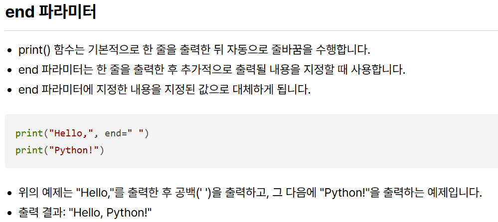 따라서, print에 end=" "를 추가하여 줄바꿈 없이 출력되도록 해봤고