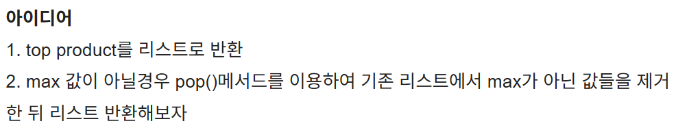 하지만 예시 데이터를 위의 내용처럼 top_product에 해당하는 항목이 2개 이상이 되었을 때