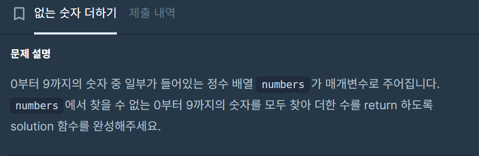 2. if ~ in 을 통해 하나씩 확인해서 없는 숫자를 찾아서 하나씩 sum 해준다.